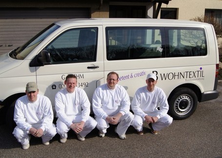 Wohntextil Brehm renoviert alles. Die Mitarbeiter des 14-Mann Betriebes - bestehend aus einem Malermeister, fünf Malern- und Lackierern, drei Trockenbauern und Fliesenlegern, einem Lagermeister, sowie zwei Mitarbeiterinnen für die Büroarbeit und zwei Aushilfen - helfen Ihnen auf den Gebieten Dekoration, Wandbespannung, Bodenbeläge aller Art, Rollo, Jalousien und Markisen, Maler- und Fassadenarbeiten, Trocken- und Ladenbau, Fliesenarbeiten, Fenster- und Türeinbau sowie Verglasung gerne weiter.